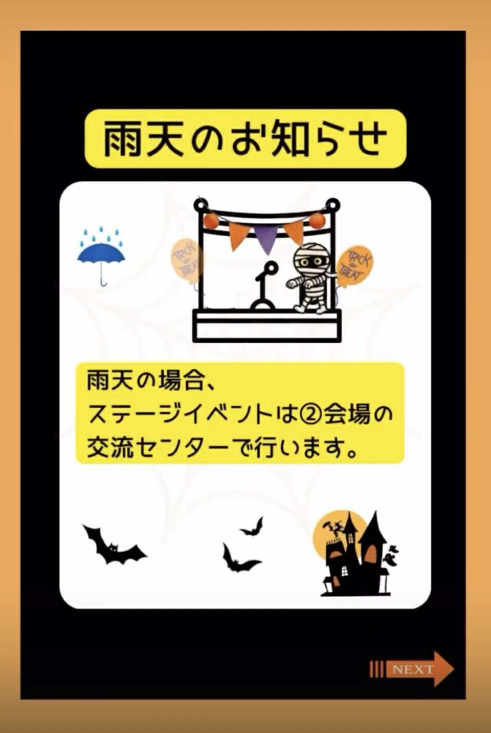 【🎃開催場所🎃】のご案内 公開済み: 2025.10.25(土)更新: 2025.10.25(土)作成者: ハロぽんカテゴリー: おしらせ 🎃開催までいよいよあと1日になりました! みなさん仮装の準備はできましたかー? 会場の場所チェックしてご来場ください♪